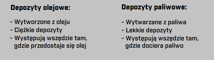 Depozyty paliwowe zazwyczaj nagromadzają się szybko. A przy zastosowaniu odpowiednich preparatów chemicznych są one stosunkowo „łatwe” do usunięcia. Osady paliwowe tworzą się, gdy niespalone cząsteczki węglowodorów z paliwa gromadzą się na danej powierzchni. Pod wpływem ekstremalnie wysokich temperatur węglowodory te stają się coraz twardsze (jak rozlana słodka herbata w gorącym letnim słońcu). Im więcej niespalonego paliwa tym więcej depozytów.