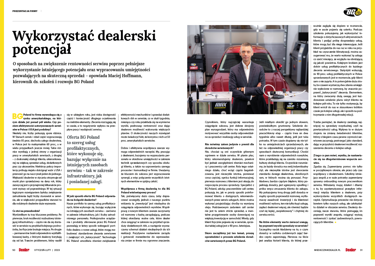 Serdecznie zapraszamy do lektury magazynu Dealer na łamach, którego został opublikowany artykuł o naszej firmie. Artykuł poświęcony jest zagadnieniom związanym ze zwiększeniem rentowności serwisu poprzez pełniejsze wykorzystanie istniejącego potencjału oraz wypracowaniu umiejętności pozwalających na skuteczną sprzedaż.